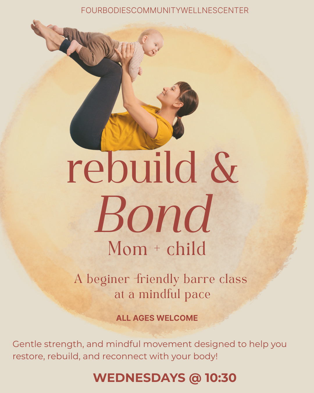 Our Rebuild & Bond class is a space for parents and their child (any age!) to move, connect, and spend intentional time together.